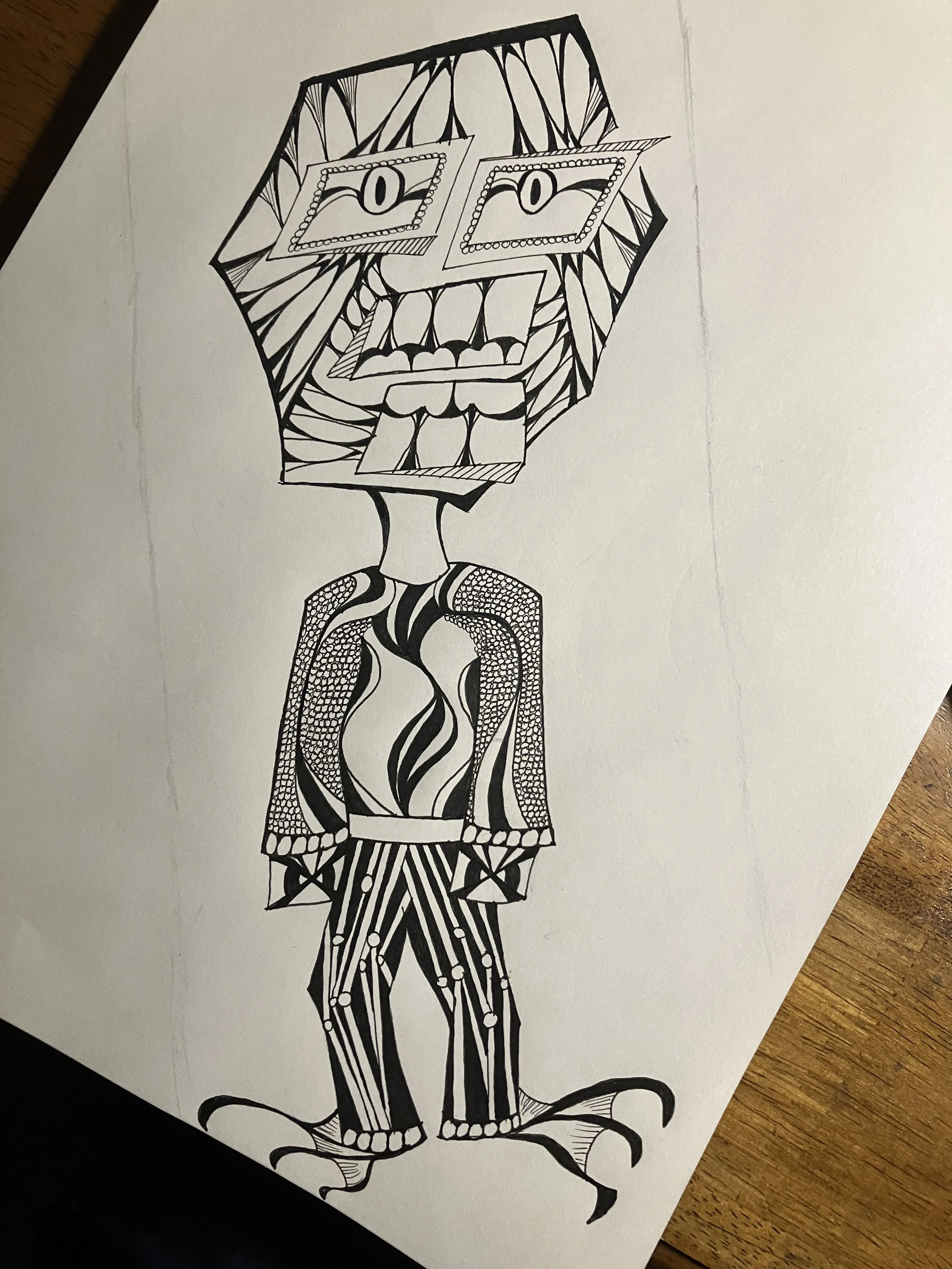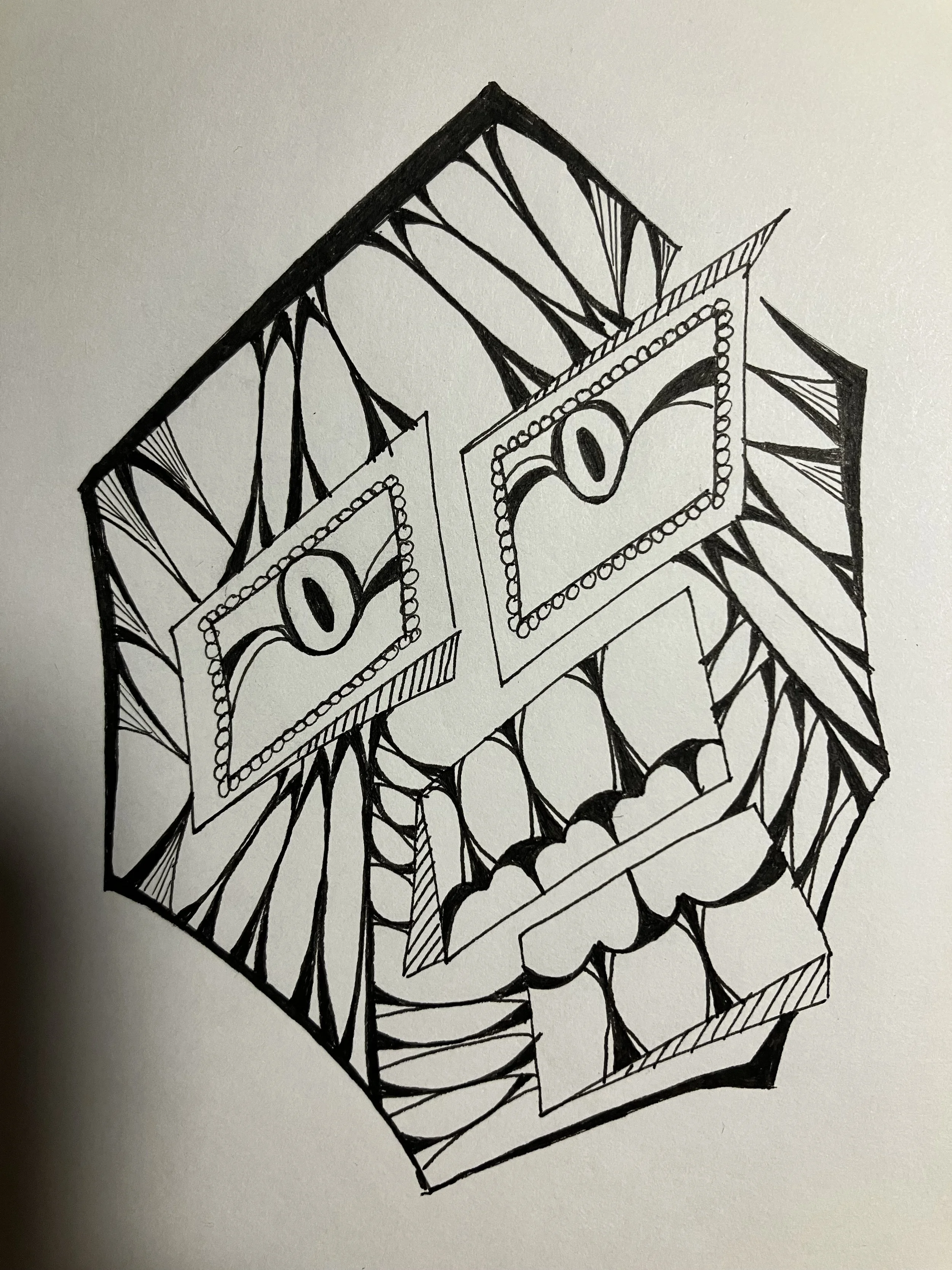 After a boring day at work and some uninspired doodling, I took up a fresh page and drew this face:
